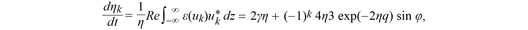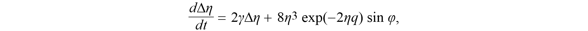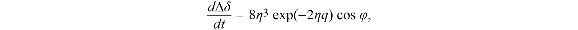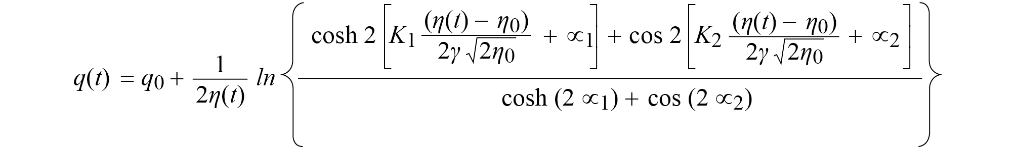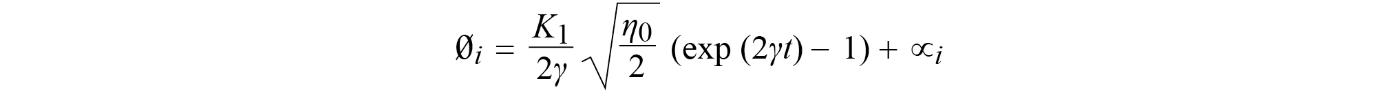 Usando la ecuación (26) con perturbación, ahora necesitamos considerar la dependencia con el tiempo que aceptamos como η = η0 exp(2γt). Se puede ver que la integración resulta en (Maguiña-Palma et al., 2019):