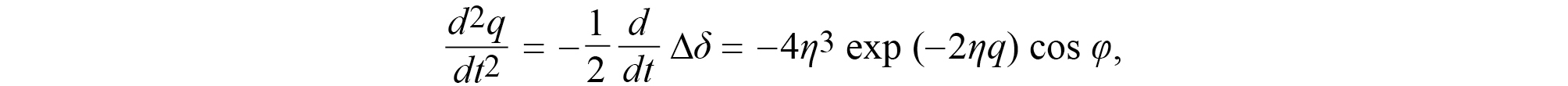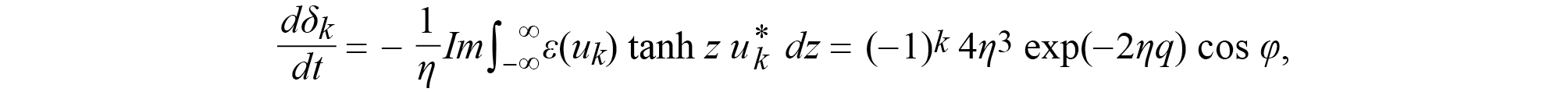 Usando las ecuaciones (19) y (20), obtenemos las ecuaciones para la distancia y la diferencia de fases de los dos solitones: