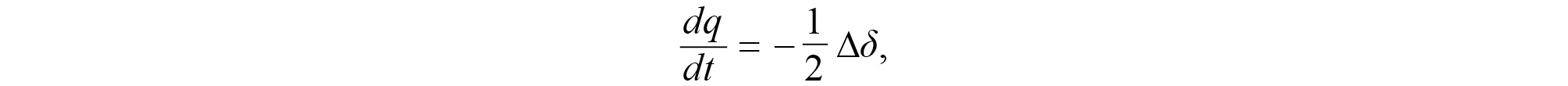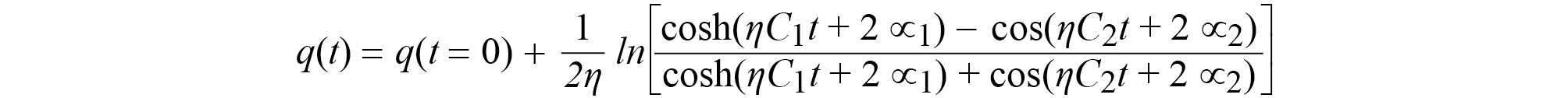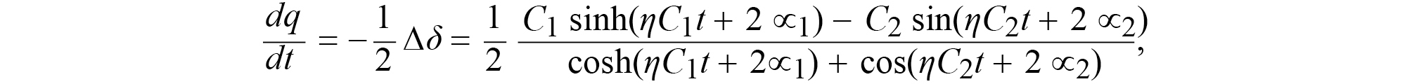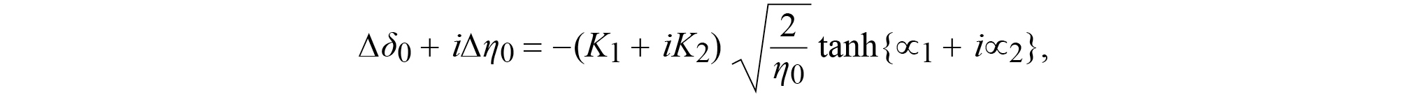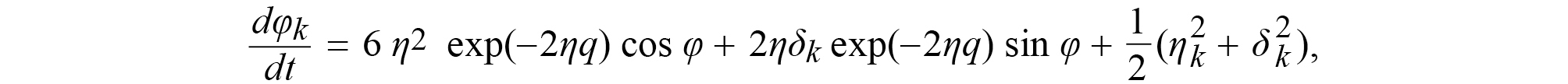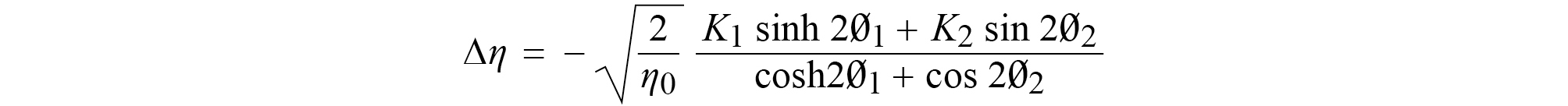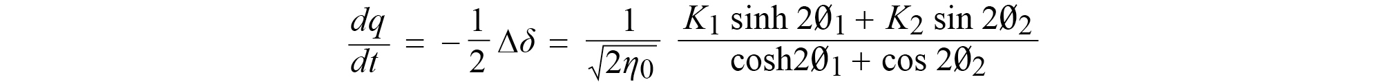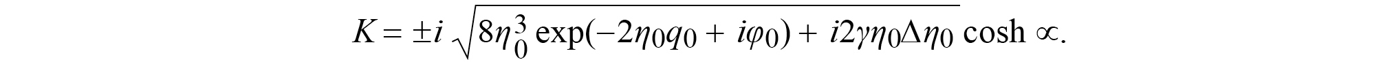 Los cuatro parámetros reales K1, K2, η0, ∝1 y ∝2 se determinan a partir de los valores iniciales de ∆δ, ∆η, q y φ a través de las ecuaciones (29-32) y (38) en t = 0, es decir: