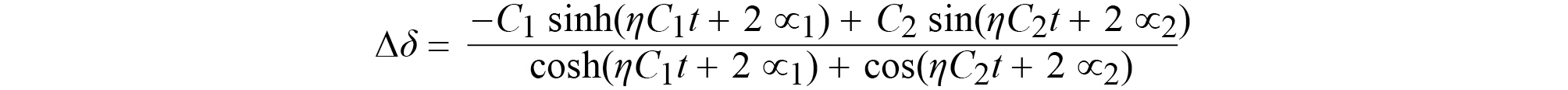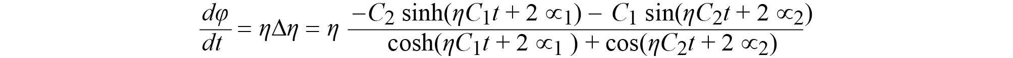De las ecuaciones (28) y (29) en t = 0, se pueden obtener las constantes de integración, considerando las condiciones iniciales: η = η1 = η2, ∆δ0 = 0, ∆η0 = 0 y φ = φ0.