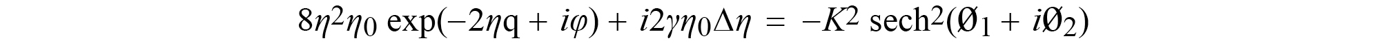 , diferencias de amplitudes ∆η= η2 - η1, velocidades δ = δ2 - δ1 y faces φ = φ2 - φ1. Suponemos que los solitones tienen una separación bastante pequeña (q2 > q1) y tienen aproximadamente las mismas velocidades y amplitudes.