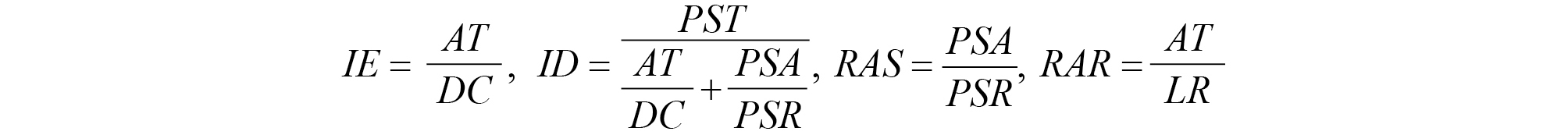 Donde: IE = índice de esbeltez, ID = índice de calidad de Dickson, RAS = relación biomasa aérea-biomasa subterránea, RAR = relación parte aérea/raíz, AT = altura total (cm), DC = diámetro al cuello de la raíz (mm), PST = peso seco total (g), PSA = peso seco parte aérea (g), PSR = peso seco de raíz, LR = longitud de raíz (cm).