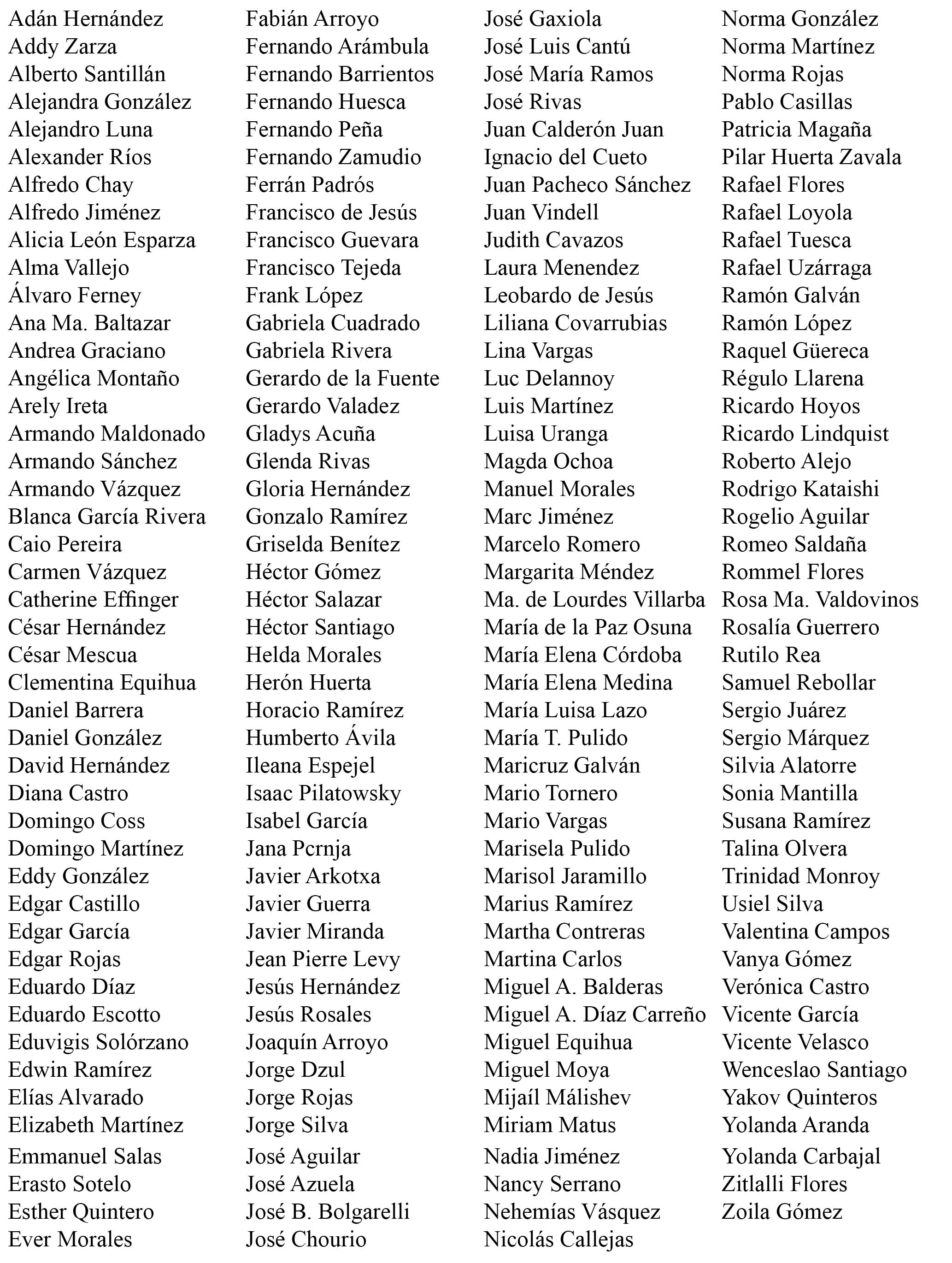 Para finalizar, expresamos nuestro agradecimiento a los árbitros que generosamente participaron en la dictaminación de los artículos durante 2019 y 2020. Su apoyo ha sido fundamental para el buen funcionamiento de nuestro proceso editorial.