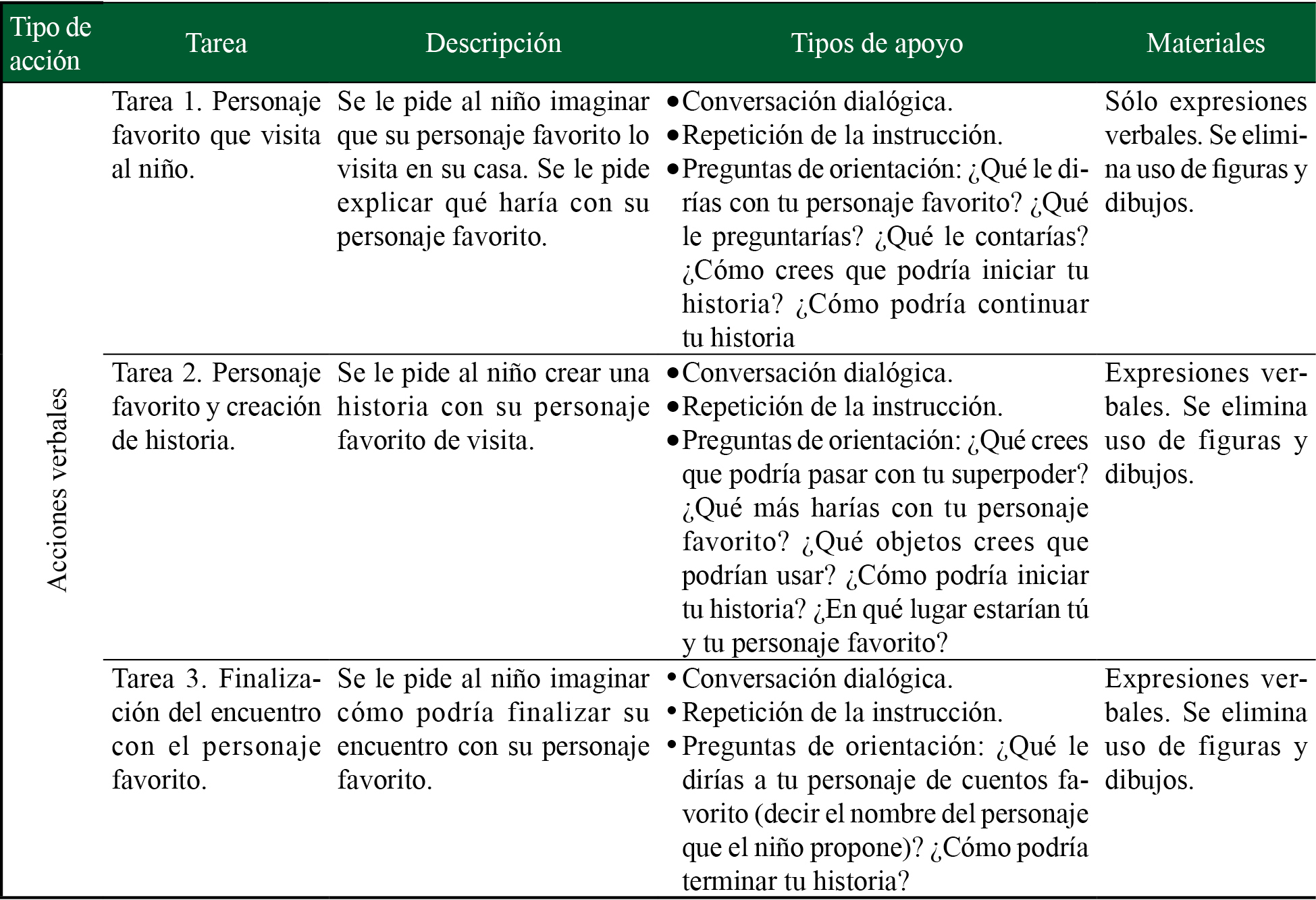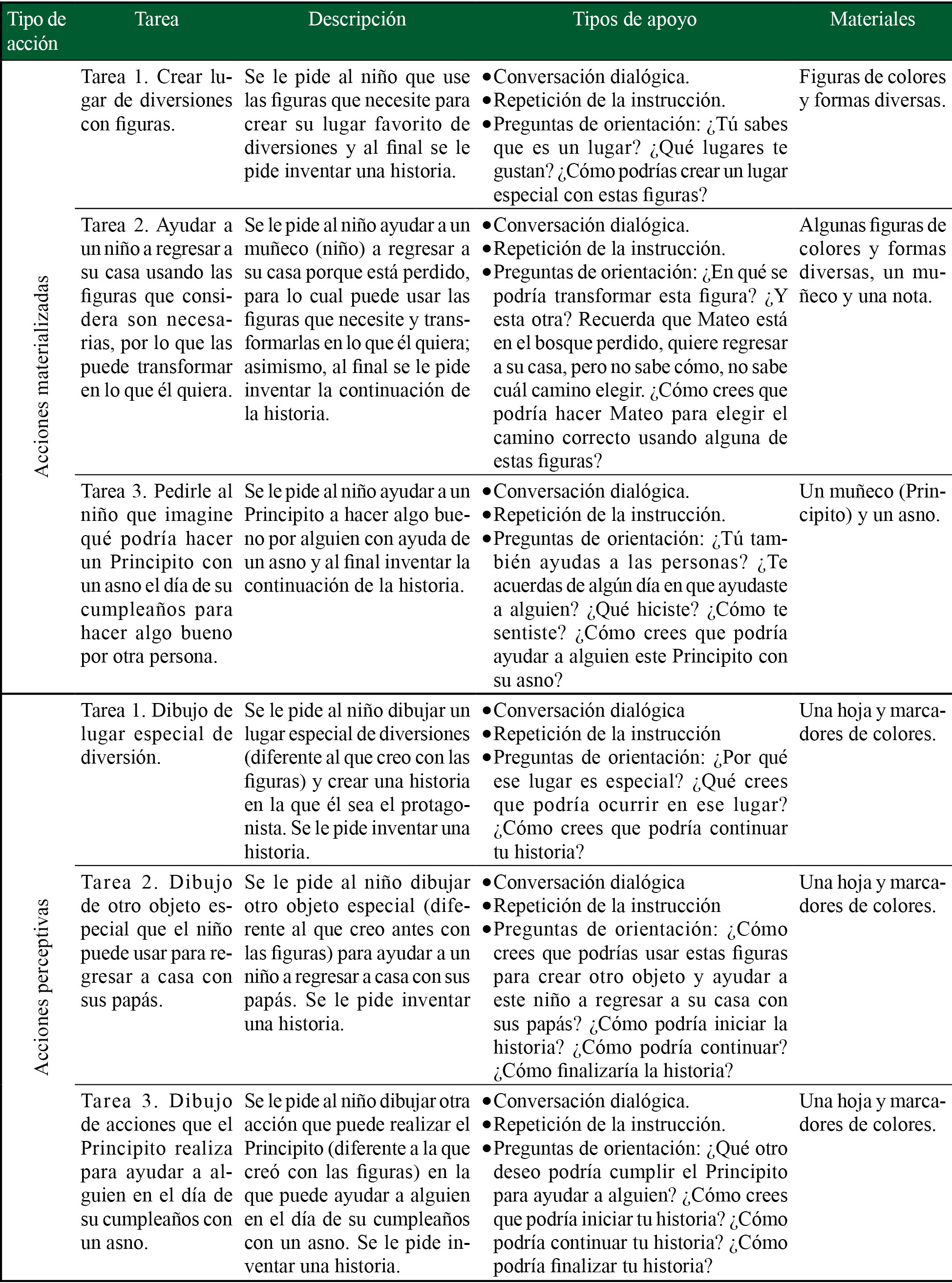 Para evaluar la imaginación creadora se utilizaron las tareas del protocolo “Evaluación de la imaginación creadora” diseñado por las autoras del artículo (González Moreno y Solovieva, 2020) (tabla 1).