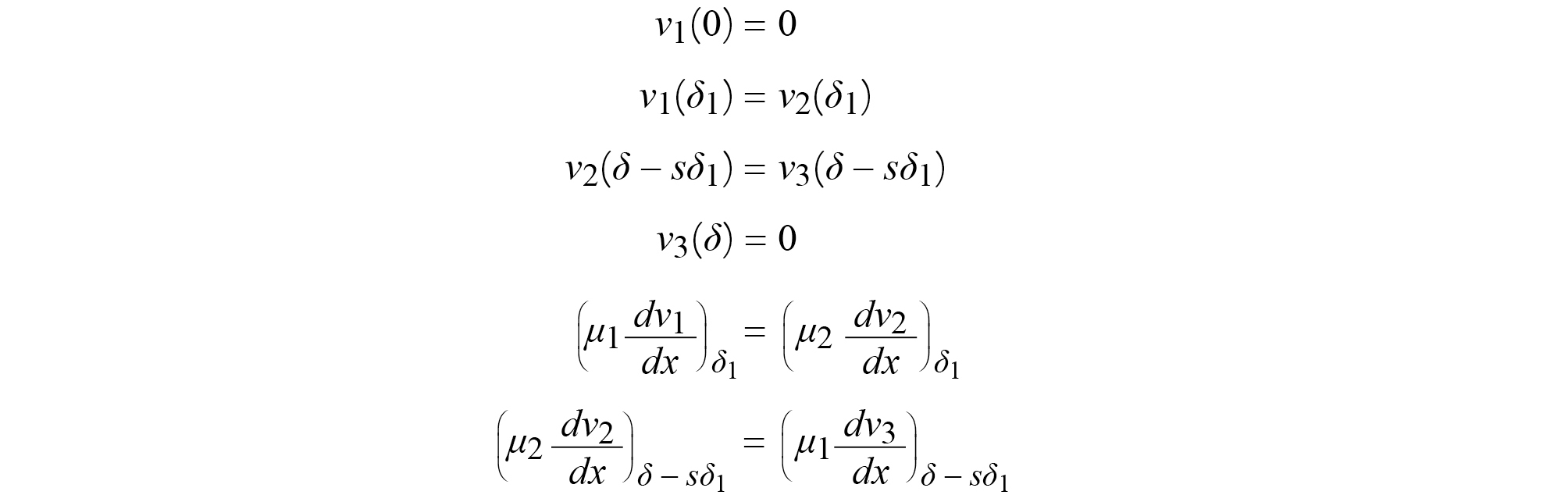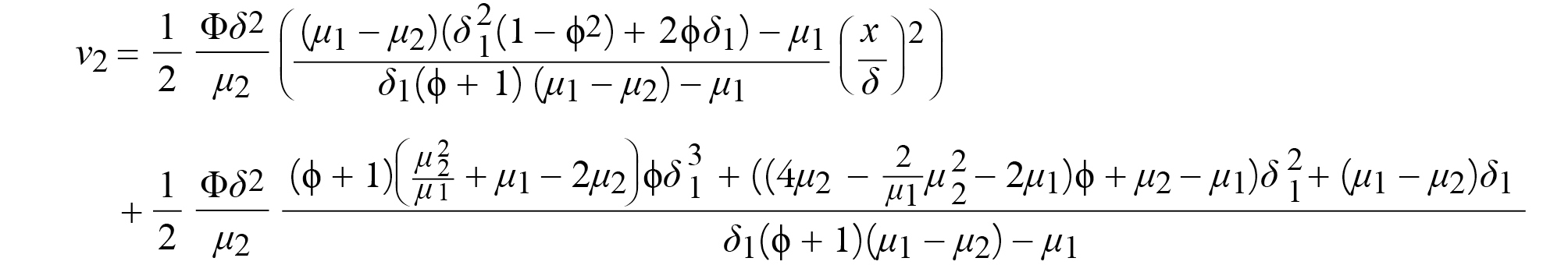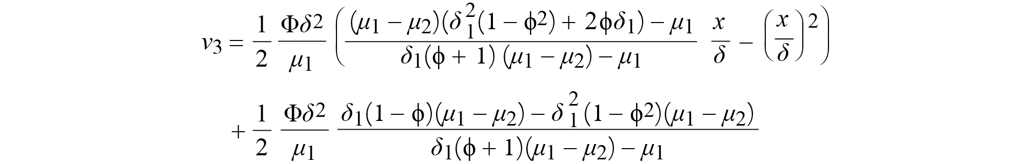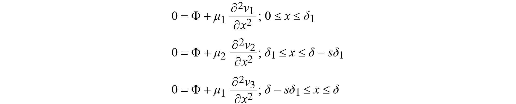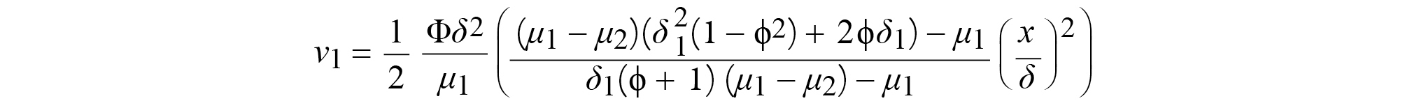 donde vn es la velocidad (m·s-1), µ es la viscosidad (Pa·s), δ1 y δ - δ1 representan las posiciones de las interfases (m) (figura 2) y Φ representa el gradiente de presión asociado a las pérdidas por fricción que, por tratarse de un medio irregular, se describe a través de la derivada fraccional de la presión p respecto a la coordenada z: