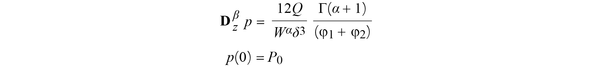 Las ecuaciones (7) y (8) involucran la integración fraccional respecto a la coordenada y asociada al ancho de la fractura, donde el orden de la integral fraccional es la dimensión fractal α del contorno de la fractura perpendicular al flujo, siendo la función gamma. Resolviendo las integrales (7) y (8) se obtiene:
