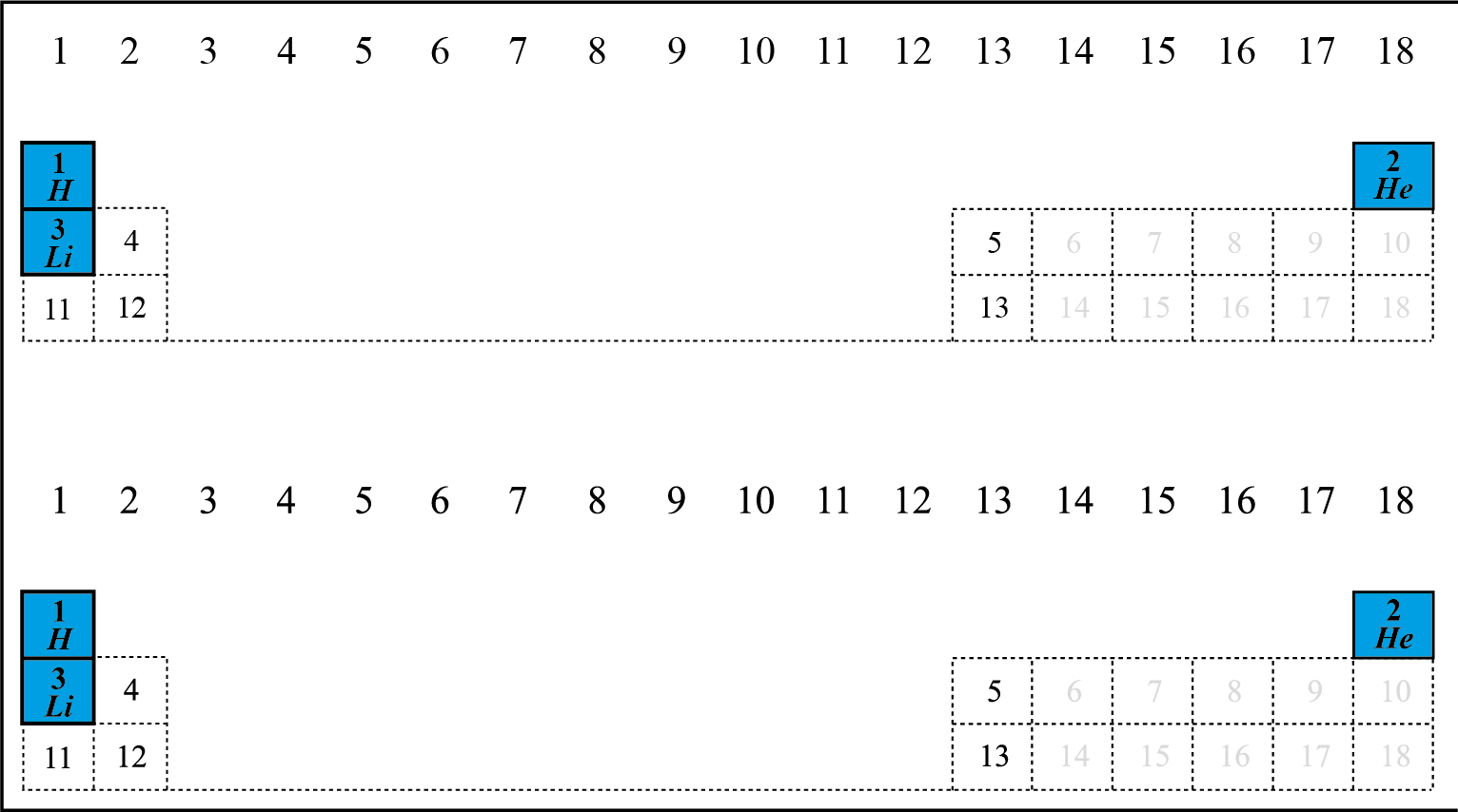 At the end SBBN predicts that the Universe is composed of about 75% of Hydrogen and 25% of 4He and small amounts of D, 3He, 7Li and 6Li. In addition, insignificant amounts of 3H, 7Be and 8Be were formed, but these are unstable and are quickly lost again (e. g., Karki, 2010). Figure 2 shows the periodic table of elements about 250 seconds after the Big Bang.