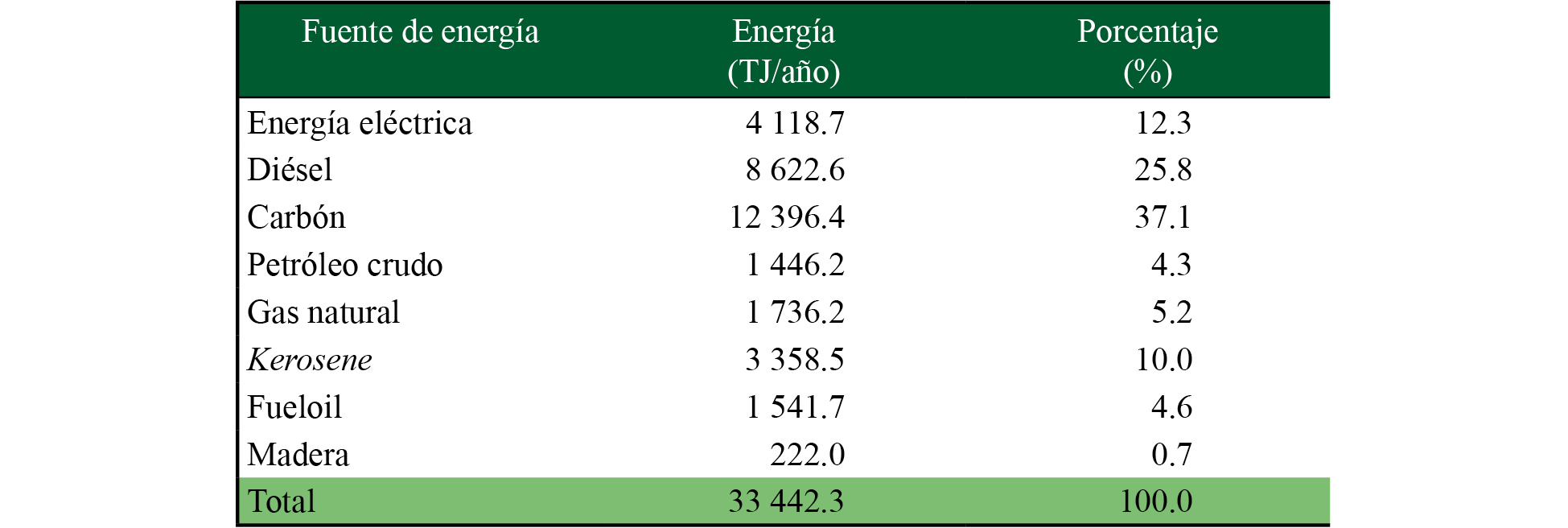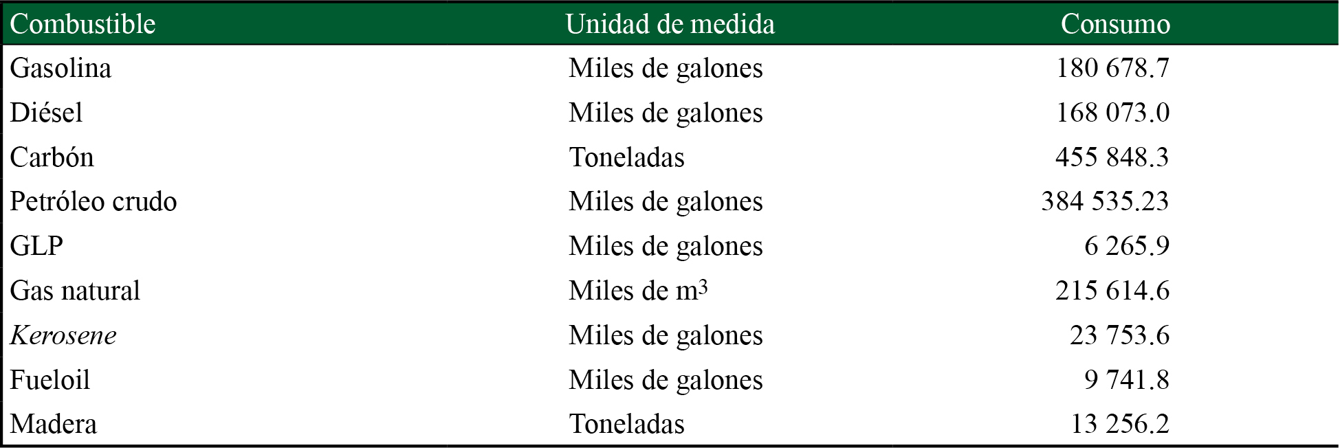 Para estimar el suministro de energía aportado por los combustibles se recurrió a su poder calorífico, que es la cantidad que constituye el calor liberado debido a la combustión completa del combustible por unidad de masa o volumen.