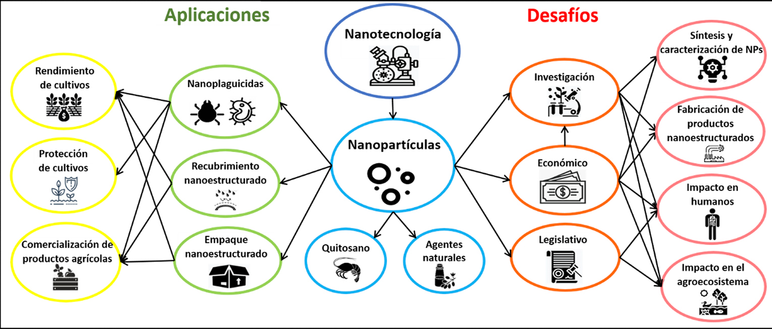 La nanotecnología se considera una herramienta útil para la agricultura y la seguridad agroalimentaria que permitirá enfrentar los desafíos agrícolas emergentes relacionados principalmente con el cambio climático, el constante crecimiento de la población y una mayor producción de alimentos inocuos bajo un esquema sostenible de los recursos naturales (Pandita, 2020). Sin embargo, la nanoagrotecnología aún no logra alcanzar el potencial deseado debido al creciente interés en la bioseguridad asociada a esta tecnología y a lo desafiante que resultan las investigaciones al respecto, por lo que es fundamental que sectores como el académico, industrial y gubernamental intervengan de manera conjunta para lograr la sostenibilidad de esta tecnología (Worrall et al., 2018).