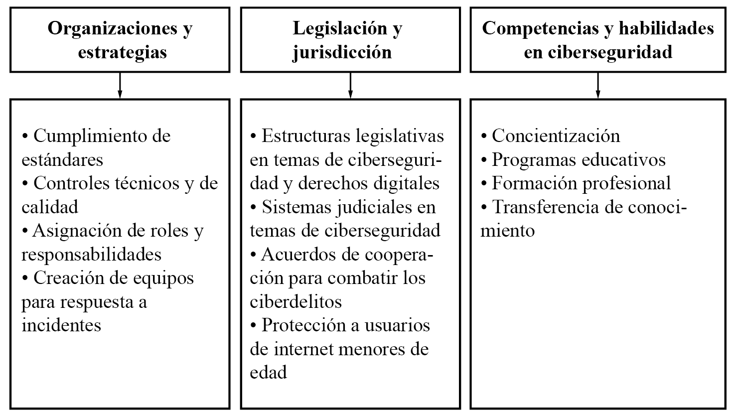 Con el panorama observado a partir de la figura 1 se debe agregar que las deficiencias en los tópicos organizativos y legislativos son conocidas por las autoridades mexicanas de seguridad pública, dado que éstas han manifestado que México necesita una organización coordinadora para ofrecer a la ciudadanía respuestas acerca de los ciberdelitos, así como una ley enfocada en la ciudadanía y alineada a marcos internacionales para fomentar la cooperación entre naciones (Congreso de la Unión, 2020). Aunque se está al tanto de la problemática y de las acciones que contribuirían a contrarrestarla, la ciberseguridad aún no es tema prioritario para el país.
