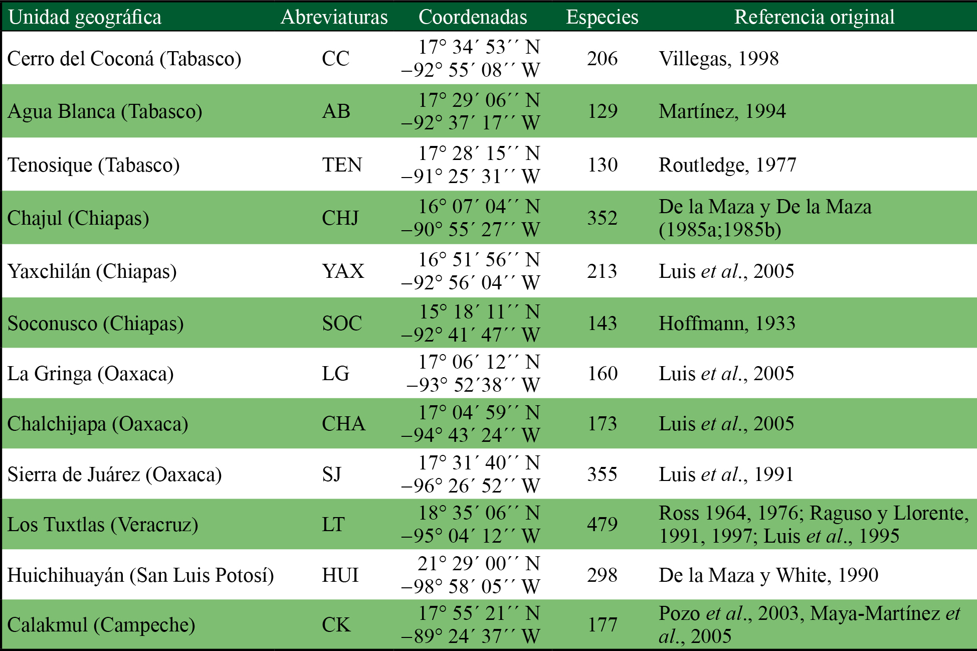 Luis, A., Llorente J. y Vargas, I. (2005). Una megabase de datos de mariposas de México y la regionalización biogeográfica, en J. Llorente y J. J. Morrone (eds.). Regionalización biogeográfica en Iberoamérica y tópicos afines: Primeras Jornadas Biogeográficas RIBES (pp. 269-294). México: UNAM.