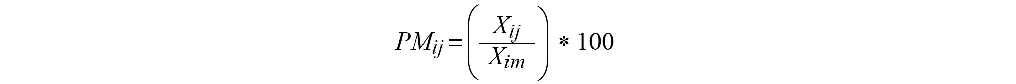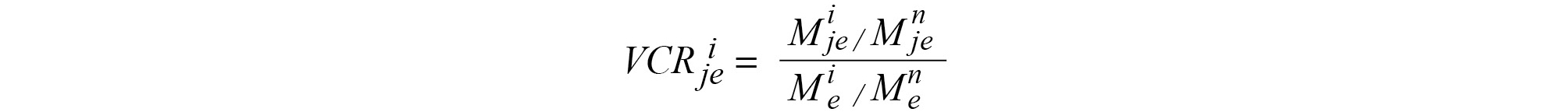 De forma paralela, reformulando lo planteado por Vollrath (1991 citado por Soto, 2019), Omaña et al. (2014) postulan que el VCR puede aplicarse a un mercado en particular. Montaño et al. (2021) añaden que, al añadir los subíndices, ije permite calcular la intervención de los proveedores en un mercado determinado a través de la siguiente fórmula: