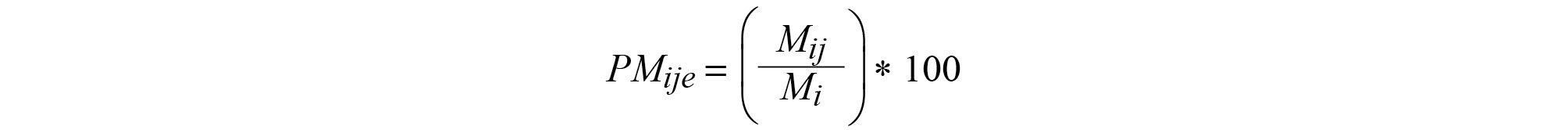 Donde la ecuación M evoca al volumen o valor de las importaciones, los subíndices i y j coinciden con la descripción de la participación en el mercado mundial.