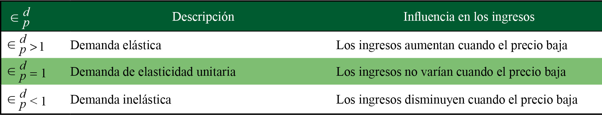 Donde representa un cambio, es el precio del producto y Q es la cantidad demandada. El resultado se explica de acuerdo con la tabla 1.