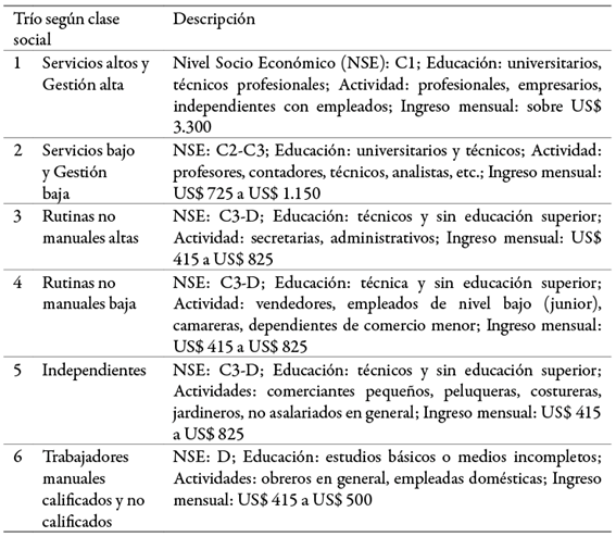 En cuanto a la clase social, al trío 1, conformado por profesionales exitosos, le es más fácil entender la tarea, abstraer y argumentar los criterios de clasificación. Sus integrantes también establecen con rapidez normas explícitas para el funcionamiento del trío, lo cual les permite pasar más fácilmente del trabajo individual al colectivo y manejar las diferencias de opinión.