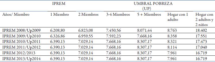 Ahora bien, ¿cómo se puede considerar a este segmento de población como pobre si no existe un umbral o línea de pobreza definida en el territorio? Para responder a este problema se optó por utilizar el Indicador Público de Renta de Efectos Múltiples (IPREM), como unidad de medida de esta investigación, ya que es el usado para la baremación y concesión de ayudas sociales por el Área de Bienestar Social del Ayuntamiento de Jerez, encontrándose por debajo del umbral de pobreza nacional (Tabla 1). De esta forma, se está considerando a la población con mayor incidencia en la pobreza y a la más desfavorecida por la misma.