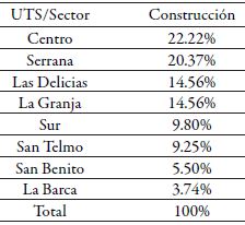 El 66,6% de la muestra del sector de la construcción se encuentra en paro; esta situación provoca que sus fuentes de ingresos se concentren en las ayudas sociales, la prestación por desempleo —si esta no se les ha agotado ya— y la ayuda de familiares y amigos. Tan solo 7,4% tiene un empleo indefinido y declarado, mientras que 25,9% dispone de una contratación eventual o sin ningún tipo de contrato, fomentando la economía irregular de dicha zona.