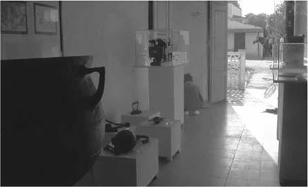 Los objetos que se exhiben son principalmente los que pertenecieron a los antepasados de las diferentes familias del batey. Entre ellos ocupa un lugar de relieve la cama de hierro de Ma' Carlota y un pequeño altar en el suelo al costado de la cama, compuesto por objetos de culto de la regla de Ocha. En la sala-pasillo, entre plantas verdes y bajo la suave luz natural, están colocados calderos, morteros, cadenas y grilletes que pertenecieron a diferentes esclavizados de los cuales se indican los nombres; también se muestran objetos rescatados de la casa de Julián de Zulueta y herramientas del central azucarero de la época posesclavista. En la sala del fondo, donde se ubica el escritorio de Eneida y un archivo de documentos guardados en un armario, hay vitrinas que exponen armas de las revoluciones independentistas que se emplearon en Álava y otros objetos apoyados o colgados en las paredes. En la exposición de las salas hay también objetos de las religiones afrocubanas -cuencos, muñecos, vasijas, imágenes-, pero no están simplemente “expuestos”, no son objetos inertes: su presencia cumple funciones de protección y resguardo asociadas con deidades específicas. Es el caso de Elegguá, orisha mayor del panteón yoruba y santo patrono del Central México, cuya representación -un caracol y otros atributos- se encuentra en la entrada del museo, al costado de la puerta. “Elegguá protege al museo y a los que nos visitan, por eso si quieres pídele y déjale una ofrenda”. Lo que allí se deposita, cuenta Eneida, es un aporte para mantener la sala museo, “con el permiso de Elegguá” (Eneida, entrevista, Central México, diciembre del 2014)29. Este uso instrumental “permitido” es parte de la misma práctica religiosa cuya función es también la de “resolver” problemas cotidianos de los fieles (Menéndez 2001). Es de destacar que estas estrategias económicas se refieren a los usos instrumentales de la religión y cabe preguntarnos entonces qué conflictividades conllevan, considerando además que Eneida no es practicante, según lo que ella misma declara.