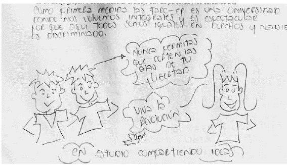 La mayoría de las cartillas trabajadas con los excombatientes presentan diversas memorias y anhelos frente a su pasado guerrillero, su presente como excombatientes y su futuro como ciudadanos. También expresan qué significó vivir ese momento único e histórico de transición: el traslado a las ZVTN. Esta etapa de cambio fue ideal para explorar sus memorias del conflicto por medio de los talleres, pues contamos con la posibilidad de entrar a un mundo de expectativas diversas muy vivas. De hecho, el ejercicio pone de presente la urgencia de un diálogo con las miradas estatales oficiales del conflicto armado que son presentadas como coherentes, pero que necesitan ser problematizadas. La multiplicidad de relatos y dibujos encontrados en las cartillas sobre el camino de algunas mujeres para convertirse en enfermeras, las historias de las personas que aprendieron de radio o comunicación, las memorias de los exguerrilleros sobre cómo aprendieron a leer y escribir en medio del conflicto armado reflejan un deseo de trascender la lógica de la guerra y continuar un proceso formativo dentro de los campos de aprendizaje que empezaron a explorar cuando estaban en la organización guerrillera. También dejan en evidencia que la educación es un dominio que excede el campo de la educación formal, y que opera dentro de la cultura como un mecanismo de identidad, resistencia y lucha. Por ello, la propuesta de hacer pedagogía desde la paz cobra relevancia, en la medida en que interpela el campo de la educación formal, les da valor a los conocimientos locales y refuerza su inclusión en un escenario nacional de posconflicto.