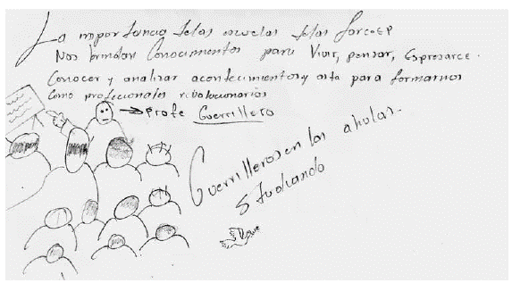 Las FARC es una escuela de aprendizaje, de enseñanza, de sabiduría, pertenencia al mundo real (las realidades del campo), allí se aprende a trabajar en colectivo, se erradica el individualismo, es decir, las FARC es la escuela donde se aprende la verdad. La importancia de que vivamos en una sociedad donde no tenemos discriminación ninguna e intercambiemos saberes entre muchos de nosotros. (Cartilla 227)