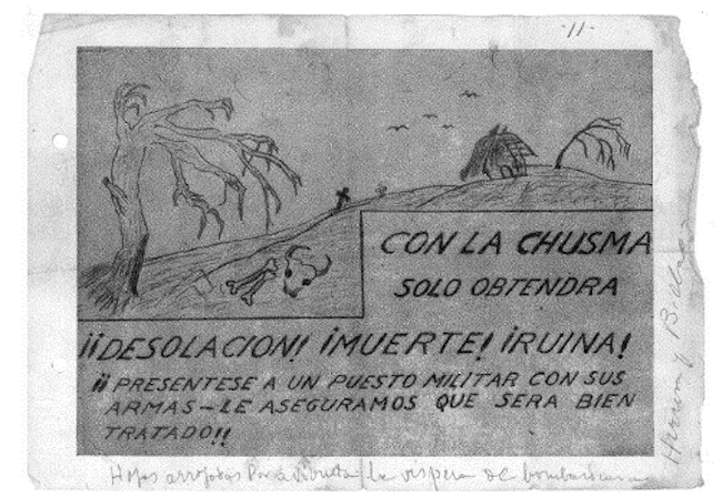 Luego del golpe militar, el general Gustavo Rojas Pinilla optó por una política de amnistía hacia la insurgencia que fue acogida por una parte de las guerrillas liberales. Esta política se conjugó con el fortalecimiento de la injerencia militar de los Estados Unidos (Vega Cantor 2015) y con operaciones militares contra poblaciones y autodefensas campesinas declaradas objeto militar (Guzmán Campos, Fals Borda y Umaña Luna 1988, 1: 102). Su gobierno también apeló al uso de volantes dirigidos a campesinos o con imágenes alusivas al entorno y la apariencia de la población rural para invitarlos a dejar las armas (figura 1), los cuales eran lanzados justo antes de la ejecución de ataques militares a poblados rurales18. Se tejió así una asociación entre el campesino y la lucha armada (Beltrán 2019), fortalecida en la década siguiente en el marco de una guerra psicológica adelantada por el ejército colombiano inspirada en la guerra de Corea (Vega 2015).