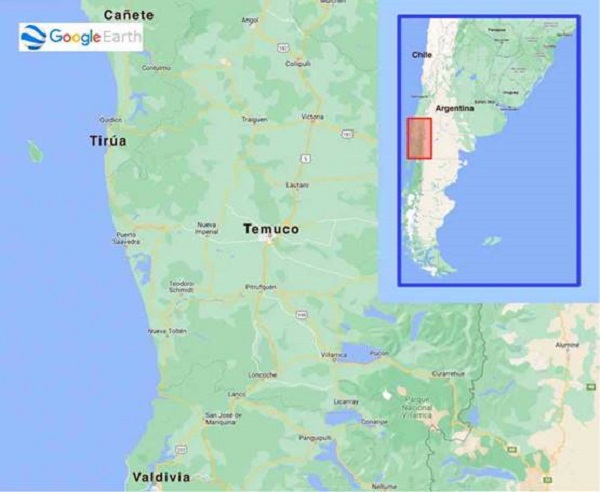 Di con Luis por medio de un amigo suyo, en quien él confía sólidamente: un “viejo compañero” de militancia en el Movimiento de Izquierda Revolucionaria (MIR) y, luego, en el Frente Patriótico Manuel Rodríguez (brazo armado del Partido Comunista de Chile, formado en 1983 para luchar contra la dictadura de Pinochet). Luis es una persona experimentada; afable, pero de trato seco y cauteloso. A su lado se está constantemente en movimiento; y así fue nuestro encuentro: primero nos vimos en Temuco (Chile), a donde él había ido a visitar a compañeros encarcelados; al día siguiente partimos para su comunidad, en Llanalhue, para lo cual viajamos hasta Victoria en la camioneta de un amigo suyo (apodado Coyote), tomamos un ómnibus hacia Cañete, otro hacia el sur, y obtuvimos el favor de dos compañeros de su comunidad que nos llevaron en sus automóviles hasta su casa, previo almuerzo en la ruca del peñi (hermano) Pedro y su familia (las referencias geográficas están representadas en la figura 1). En la casa conocí a su hijo (Lorenzo) y a su sobrino (Facundo). A unos metros de allí, en otra casa de la comunidad, vivía otro sobrino de Luis (Hernán) junto a su esposa (Ana). Dormí en la casa de Luis, compartiendo la habitación con Facundo y Lorenzo, y al día siguiente, bien temprano, volvimos a subirnos a otra camioneta en la que Ana llevó a Luis, su hijo y sus dos sobrinos al terreno en que debían trabajar por la “defensa del territorio”. Mi viaje se completó con un ómnibus a Valdivia, en donde la madre y la hermana de Luis me recibieron amablemente. Luis fue a Valdivia unos días después para visitar a otros presos políticos.