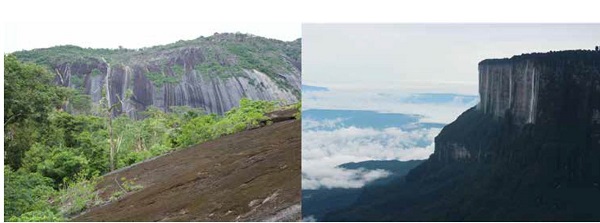 La relación entre los mitos diluvianos y los mitos del árbol de la vida se hace palpable a partir de una particularidad que comparten las formaciones montañosas como el Roraima y las inselbergs (como la de Punta Brava): las múltiples caídas de agua (figura 9). Además, en la cultura pemón, quienes habitan en las regiones aledañas al Roraima no solo se refieren a esta montaña como el árbol de la vida, sino también como la “madre de todas las aguas”7.