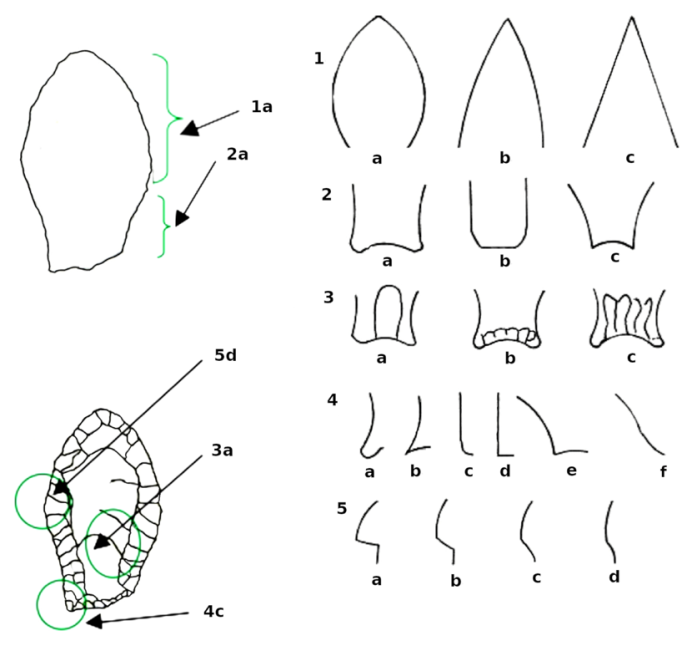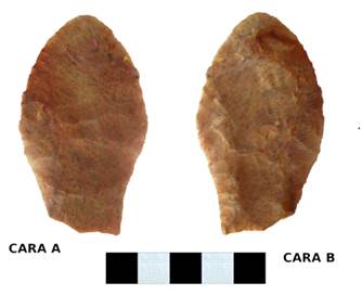 Este análisis indicó que se trata de una punta de limbo lanceolado y simétrico, con una sección transversal biconvexa simétrica. El filo es normal y de arista regular. La punta tiene un pedúnculo destacado, de lados paralelos y de base cóncava. Además, aletas dobles, en hombro, y asimétricas por posición (véase figura 3).