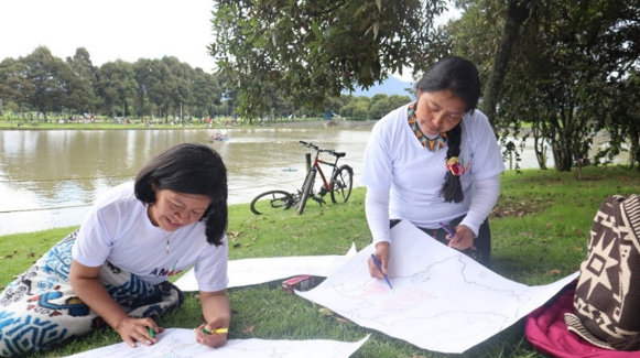 El segundo aspecto que las mujeres expresaron durante el ejercicio de elicitación fotográfica tiene que ver con el desarrollo de sus procesos políticos. Retomando a Kernaghan y Zamorano Villarreal (2022), aunque las fotografías no revelan necesariamente el momento político que se viene desplegando, sí dan claves del encuentro empírico actual, que va más allá del sentido fáctico de la imagen, es decir, de los bordes de la representación. Las mujeres de la AMIC tienen un mayor conocimiento de la participación política en la ciudad, por lo que han logrado acceder a ciertas posiciones para gestionar acciones en beneficio de sus comunidades. La mayoría hace presencia actualmente en algunos espacios institucionales, como los consejos de planeación locales (CPL), en las casas de igualdad de oportunidades para las mujeres, y han sido cocreadoras de las mesas étnicas. Llegar a estas posiciones ha implicado la negociación con las autoridades de los pueblos y a veces también la rebeldía, porque los gobernadores y las mujeres aliadas con estos siguen controlando presupuestos y proyectos a nivel distrital. Por lo tanto, el grupo que continúa en la AMIC se ha dedicado más a los proyectos en las localidades, como una estrategia para avanzar en los microespacios, donde pueden tener algo más de incidencia que en los espacios distritales (comunicación personal, 30 de julio de 2023).