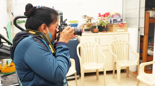 De esta manera, la AMIC oficializó su creación durante la conmemoración del Día Internacional de la Mujer en 2019. Al conformar el grupo, las integrantes se enfocaron en expandir su trabajo colectivo y ofrecer un escenario de contención y apoyo para las mujeres indígenas, pues, como menciona Blanca, “el proceso organizativo nos ayudó a conocernos mutuamente, a conocer nuestros derechos, a valorar nuestro trabajo y a que las instituciones supieran que existimos” (comunicación personal, 6 de marzo de 2022). De acuerdo con esto, el surgimiento de la AMIC se inscribe dentro de lo que Ulloa (2007) concibe como una redefinición de la participación política y sus alcances, fundada en la experiencia real de las mujeres indígenas en la toma de decisiones, a contrapelo de la simple asistencia, el acompañamiento o la participación en eventos. En este sentido, las mujeres eligieron continuar con la labor creativa en vista de las posibilidades de los medios audiovisuales para contar sus historias y para lograr una agencia y una incidencia más amplias en la ciudad (figura 1), enfocándose en expandir su trabajo colectivo y, como dice Jenny Jamioy, en “poder ofrecer un espacio de contención y apoyo para las mujeres donde hay una mano amiga, un tejido y una palabra dulce” (comunicación personal, 29 de enero de 2022).