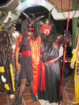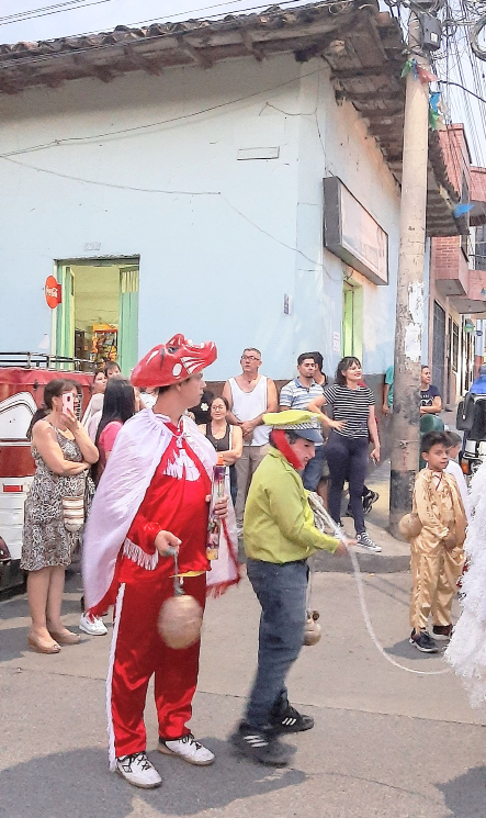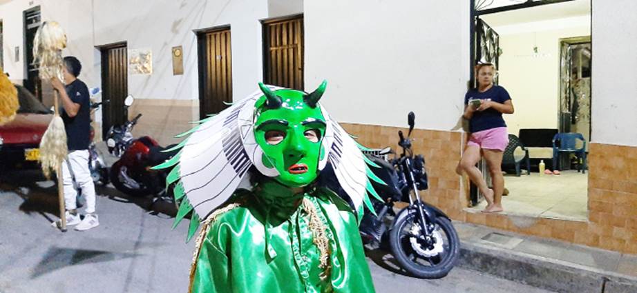 Anteriormente, eso a las ocho o nueve de la noche estaban por ahí molestando con los disfraces, e incluso algunos se iban a las cantinas y amanecían, con la máscara siempre. Eso antiguamente usted no quería que supieran quién era el matachín, y eso era un misterio completo; pa tomarse uno una cerveza, eso era por allá en un rincón. (Comunicación personal, diciembre de 2014)