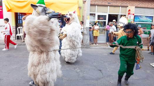Los pasos se tornan cada vez más difíciles. Ha sido una larga cuadra a toda velocidad coordinando de manera insospechada las piernas entre huecos, personas y motos estacionadas. El corazón se hace sentir en el pecho, casi en la garganta; las pestañas luchan por no dejar pasar el sudor de la frente. A pesar de la velocidad, no se mueve ni uno de los pelos apelmazados entre agua y maicena. La mente solo está puesta en una cosa: evitar ser alcanzado por el golpe de la vejiga del matachín.