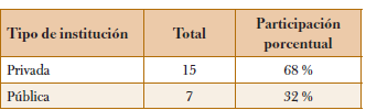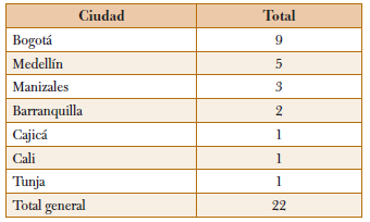 En el 2014, bajo la categoría Ciencias Sociales y Humanidades del Sistema Nacional de Información de Educación Superior (SNIES) del MEN, encontramos 63 doctorados a nivel nacional11. De estos programas, se escogieron aquellos con un enfoque interdisciplinar y transdisciplinar explícito en su presentación, como un criterio básico para unas ciencias sociales críticas12; como resultado, se revisaron 22 programas repartidos entre instituciones de carácter público y privado y por ciudades como se muestra en las tablas 1 y 2.