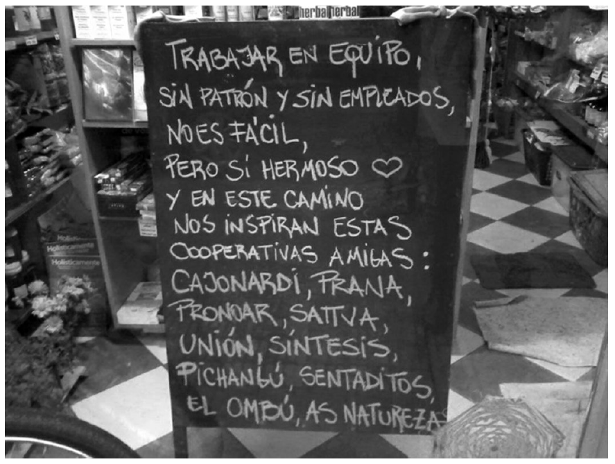 Hemos identificado el uso del término complementariedad en los siguientes sentidos distintos pero vinculados entre sí: el trabajo permite complementar aspectos de la vida de los integrantes (políticos, personales, formativos); se busca que haya una complementación entre los integrantes cuando trabajan en lo productivo y la gestión; la complementariedad permite la posibilidad de que, en el transcurrir, cada uno vaya encontrando su rol específico: "Hay uno que le sale hacer bien los pedidos, a otro le sale bien acomodar tal sector, a otro le sale ir a buscar productos por ahí, y bueno, la idea un poco es esa, que cada uno vaya encontrando e ir sumando" (trabajador de Inlakech, entrevista 15 de junio del 2015). También se va configurando una afinidad por la cual se decide a quiénes comprar la materia prima para producir, se discute también a quién vender los productos, se definen precios de venta diferenciales, en síntesis, se conforma un movimiento con otros valores, criterios y orientaciones del hacer.