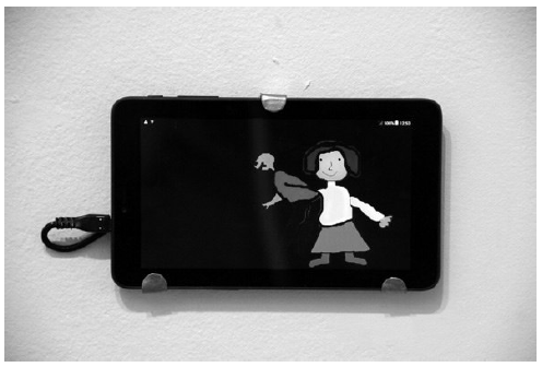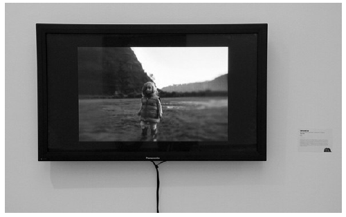 En la muestra esa exuberancia creadora y ensoñadora la señaló el trabajo Construcción 1 de la serie Extraños paraísos, de Adriana Duque, en éste se evidencia el tiempo de la infancia: un periodo muerto, el tiempo que se sale del tiempo, el tiempo suspendido, el tiempo de la lentitud ensoñadora y creadora. También se presentaron trabajos destinados a hacer visible una dimensión más oscura y compleja de la infancia, que hace parte de su propia potencia. Alrededor de ese lado oscuro y enigmático de la infancia, Ángela Peña desarrolla su escuetos e inquietantes dibujos (imagen 9a). Ronda No. 1 De tripas corazón, de Humberto Junca, apeló a las tristes alegrías de las rondas infantiles para hacer ver lo que se teje y lo que se desteje, lo que vive y lo que muere en los cuerpos infantiles. Finalmente, se presentó un montaje que reunía fragmentos de películas sobre la infancia con frases de educadores y filósofos de la educación (imágenes 9b y 9c). De estas últimas extraemos un ejemplo que marca el tono de todo lo mencionado.