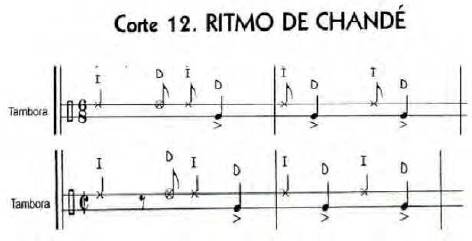 Carbó afirma además que el chandé es una de las modalidades rítmicas exigidas en los festivales, lo que ha dado lugar a cierta confusión, "ya que parecería que cada persona practica esta modalidad rítmica a su manera, sin saber cuál es el origen -desde un punto de vista rítmico- de los chandés así interpretados [...]" (Carbó, 2003: 310).