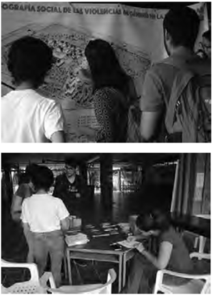 Después de la ubicación de los autoadhesivos en el mapa, los/as participantes registraron los hechos (de manera anónima) en un formato que permitía su descripción y se proporcionaba información sobre su estamento (estudiantil, profesoral, administrativo), la fecha, lugar y el registro breve del hecho de violencia basada en género, robo y lugares percibidos como de riesgo o seguros (imagen 1).