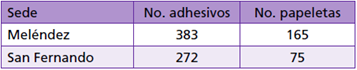 Una vez terminado el ejercicio, el trabajo del equipo se concentró en procesar y analizar la información. En primer lugar, cada adhesivo fue identificado, numerado y ubicado en el mapa virtual correspondiente (uno por cada tipo de violencia). Después, se contaron los formatos, se clasificaron por tipo de violencia y se contrastó la información con los casos reportados a través de los adhesivos. Este procesamiento de la información reveló algunas limitaciones del ejercicio, entre éstas encontramos: la delimitación a priori de las tipologías de violencia, lo cual llevo a evidenciar que había en las/os participantes poco conocimiento sobre éstas. Otra limitación es que el ejercicio no implica que los casos correspondan fielmente a hechos ocurridos, lo cual no permite hacer generalizaciones, por lo tanto, consideramos que si bien la cartografía realizada con base en el mapa institucional permite visibilizar percepciones y representaciones, no es suficiente como única estrategia metodológica, sino que debe complementarse con técnicas que favorezcan un alcance analítico mayor. De igual manera, debe trabajarse en mejorar la correspondencia entre los adhesivos ubicados en el mapa y los formatos, para lograr una información con mayor coherencia (tabla 1).