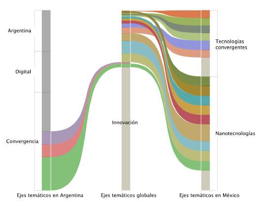 Las temáticas desarrolladas en Argentina y México están principalmente relacionadas con el eje temático de innovación en la literatura global, lo que constata la amplitud de las potencialidades y promesas de la innovación para el desarrollo económico y social. En este marco, las tecnologías emergentes desempeñan un papel central en la retórica de la convergencia tecnológica, ya que sus potencialidades prometen cambios importantes en términos económicos, sociales y ambientales, lo que las hace atractivas. No obstante, observamos asimetrías importantes entre los ejes temáticos en Argentina y México, así como vacíos en las políticas en ciencia y tecnología que ponen en desventaja a estos países para obtener un provecho futuro de estas tecnologías.