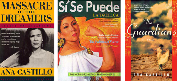 Cuando inicié mi investigación para Massacre of the Dreamers, me pregunté: ¿qué es una chicana? ¿Quién es esta mujer de la que escribiré? Era una búsqueda pragmática y lo que fui descubriendo es que la mujer mexicana, tanto en la cultura prehispánica como después, es que ha sido definida desde un marco muy religioso. No podía extraer lo uno de lo otro. Con la iglesia católica, la cultura y la tradición se mezclan en la religión. Algunos de los mandatos más estrictos dictados por el papa son en contra -bueno, yo creo que lo son- de las mujeres. En este sentido, no puedo separar la identidad de la mujer mexicana y chicana del universo religioso. Las mujeres, creo, cargan las tradiciones de las religiones, así ellas no sean las que formulen la ideología. (Castillo, en Milligan, 1999, p. 20)
