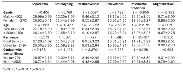 Results.: Our findings revealed that 54.5% of medical students versus 64.8% of nursing students have positive attitudes toward mental illness. While medical students have better attitudes against separatism and stigmatization, nursing students have more positive attitudes in benevolence and against pessimism.