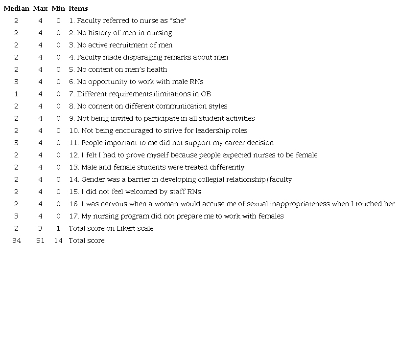 14. O'Lynn CE. Gender-based barriers for male students in nursing education programs: prevalence and perceived importance. J. Nurs. Educ. 2004; 43(5):229-36.