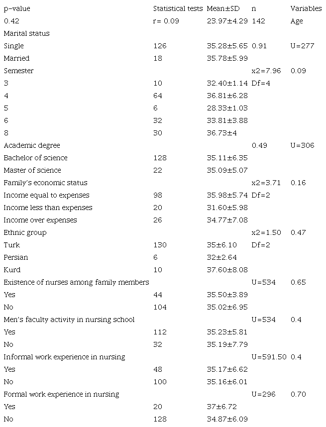 Data analysis. After all, the data were entered into the SPSS statistical software, version 16. The descriptive variables were analyzed using descriptive (frequency, mean, Standard Deviation -SD). The mean and SD were calculated for the total scale score and for each item the median, minimum, and maximum values were calculated according to Sullivan and Artino's recommendation for the interpretation of Likert-type scale data.18 For inferential analysis, Kruskal-Wallis and Mann-Whitney tests and Pearson’s correlation coefficient were used.