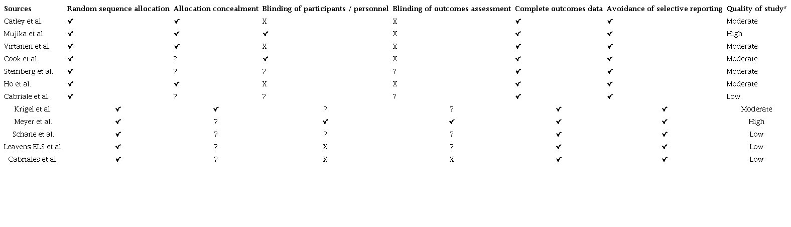 Bias assessment. Cochrane review criteria were used to assess the risk of bias in included studies in the review (Table 1).31 All studies were evaluated on six evidence-based domains: allocation concealment, random sequence generation, participants and personnel blinding, outcome blinding, incomplete outcome data, and selective reporting.31 Allocation concealment refers to concealing the information on the randomization process to the subjects. Random sequence generation occurs when study participants are not aware of the random sequence generation process. Blinding of participants and personnel refers to when participants and team members do not know the intervention or control condition to which subjects are assigned. Blinding of outcomes assessment refers to whether outcome measurement could have been changed by prior intervention knowledge to participants or team members delivered in work. Selective reporting refers to presenting only findings of interest. An incomplete outcome does not consider attrition while submitting the result.31 For each study, these components are shown in ‘high risk,’ ‘low risk,’ or ‘unclear’ as written in the published version of the manuscript to decide on bias assessment. In data extraction, two authors assessed each study for bias. The authors discuss the risk bias criteria of the study using a checklist and conclude. The discrepancies were resolved after a discussion with the third author Table 1.