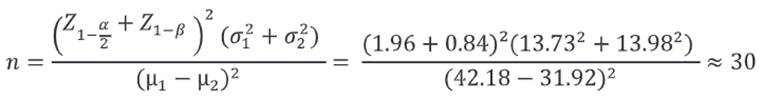 According to the results of caregiver burden in previous study,13 after intervention in control group(42,18 ± 13,73) and intervention group(31,92 ± 13,98),β=0.20, α= 0.05, effect size=0.74, sample size calculated 30 in each group and totally 60 caregivers.