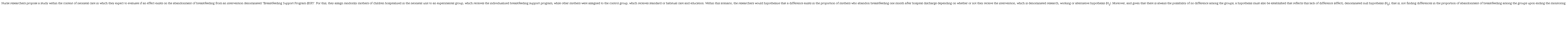 Conclusão: A real utilidade da investigação sobre intervenções no contexto dos cuidados de enfermagem é dada pela sua real aplicação e âmbito de prática e benefício para os pacientes. Para que isso ocorra, os enfermeiros devem interpretar adequadamente as informações fornecidas pelas publicações científicas e outros relatórios de pesquisa.