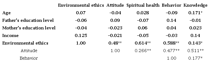 Conclusion: Spiritual health and environmental ethics were strong predictors of environmental behavior. Therefore, it is necessary to take into account not only students' spiritual health but also their ethical behaviors to promote environmental protection behaviors in the future.