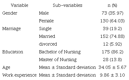 The final reliability. In this section, two methods of internal consistency and stability were used. To determine the internal consistency, the questionnaire was completed by 30 nurses and then Cronbach's coefficient alpha was calculated. Cronbach's coefficient alpha above 0.7 indicated acceptable internal consistency. 16,17 Test-retest method was used to determine the stability. For this purpose, the questionnaire was completed twice at intervals of two weeks by at least 30 nurses. Then the intra-class correlation coefficient (ICC) was calculated. Intra-class correlation coefficient above 0.7 indicated acceptable stability.16,22