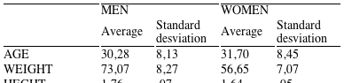 It was worked with popular runners and who agreed to participate in the study on a voluntary basis. Got a sample of 473 popular runners (374 men and 99 women) who participate in the San Silvestre Crevillentina and the half marathon of Santa Pola. In table 1 you can see the averages and standard deviation of the age, weight and height of the popular runners.