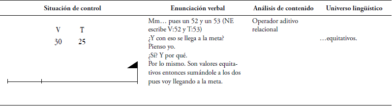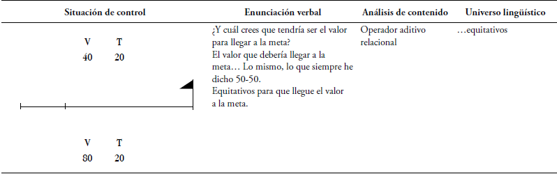 La Tabla 8 presenta evidencia de un operador aditivo relacional que le permite al sujeto estimar llegar a la meta con valores que juzga equitativos.